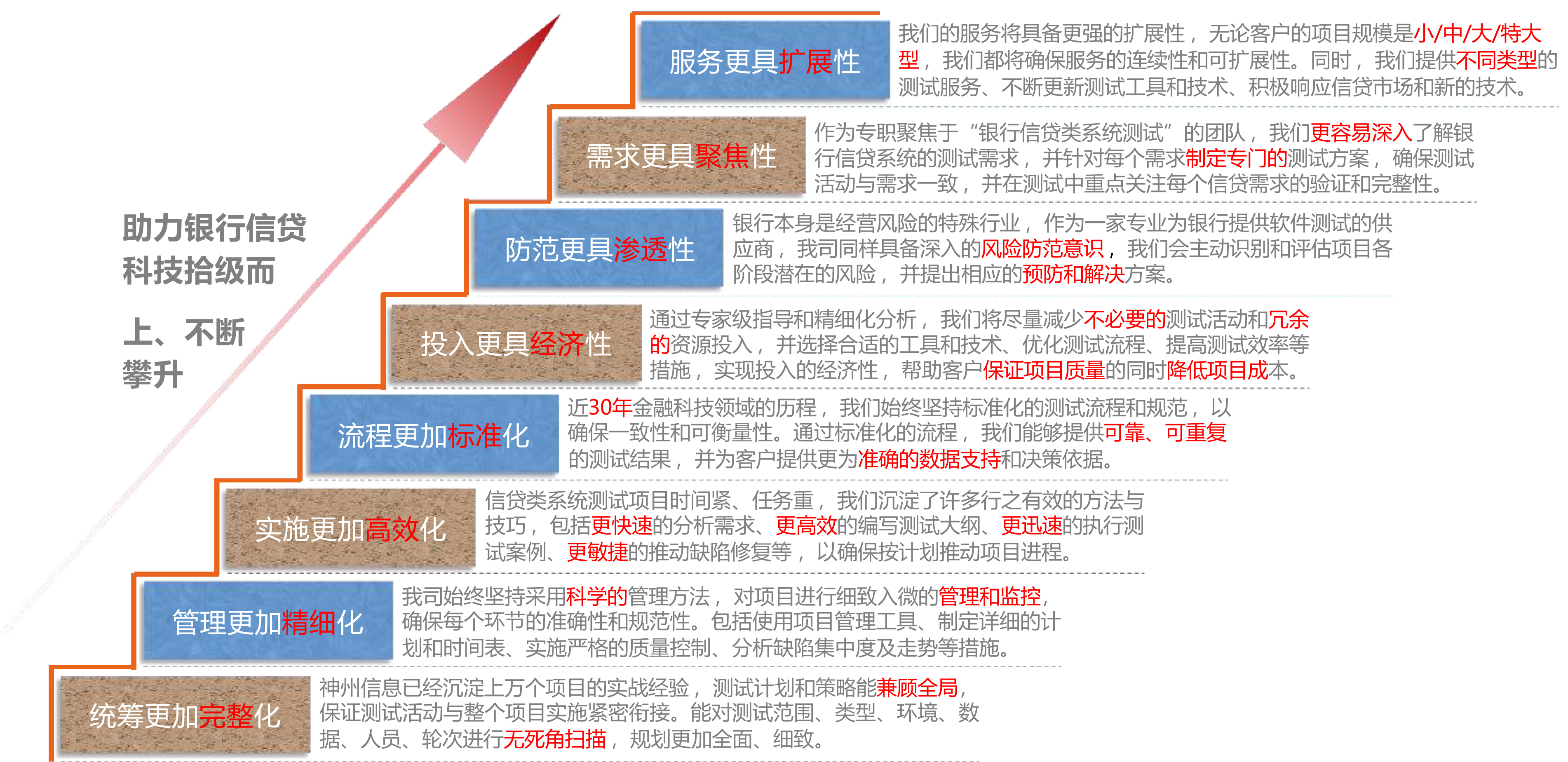 我们将以快速响应能力为导向,及时处理银行在信贷类系统测试过程中遇到的问题和需求变,以确保项目的成功实施、符合客户预期。